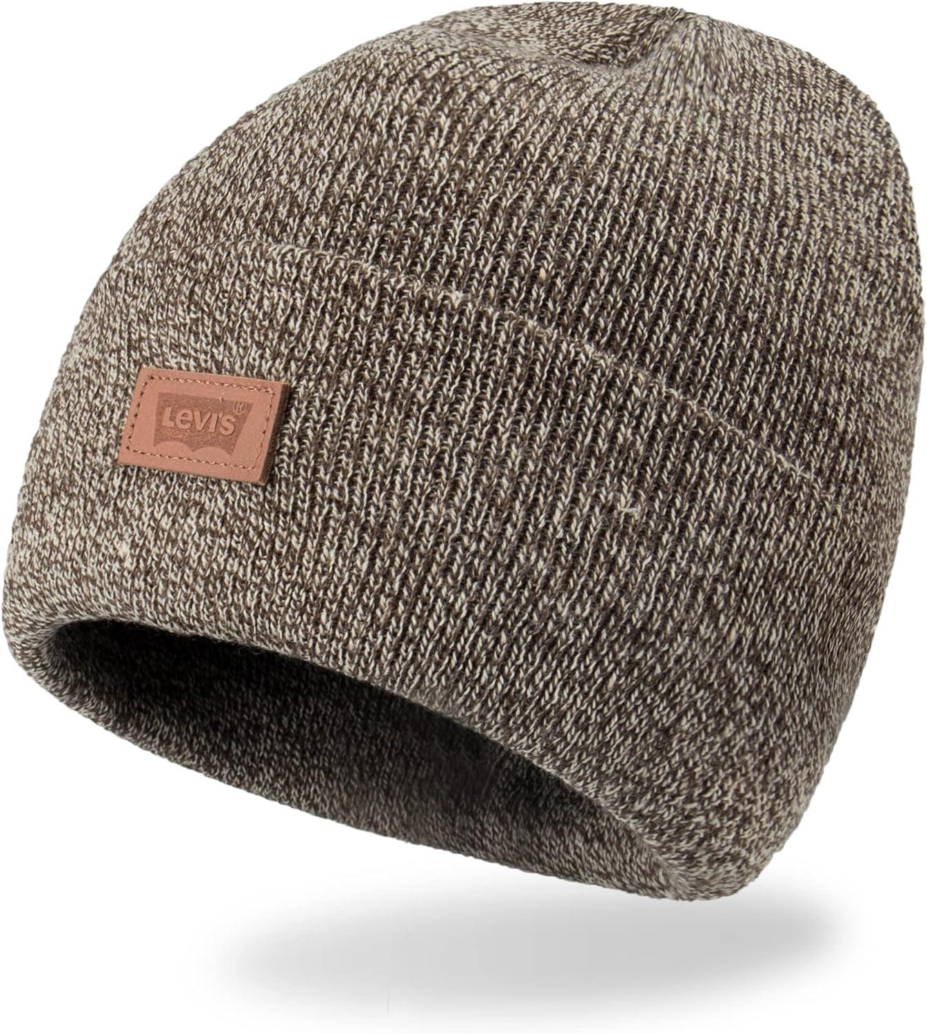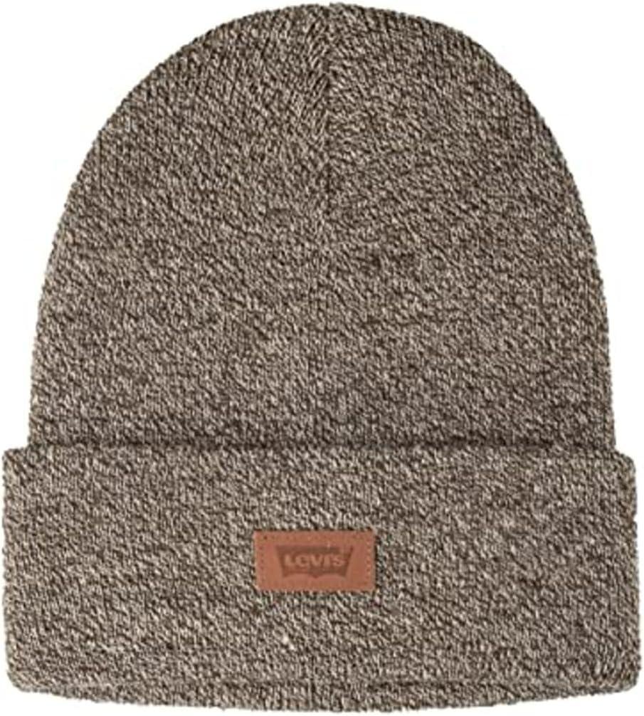 Levi’s All Season Comfy Leather Logo Patch Cuffed Hero Beanie(Marl Brown)