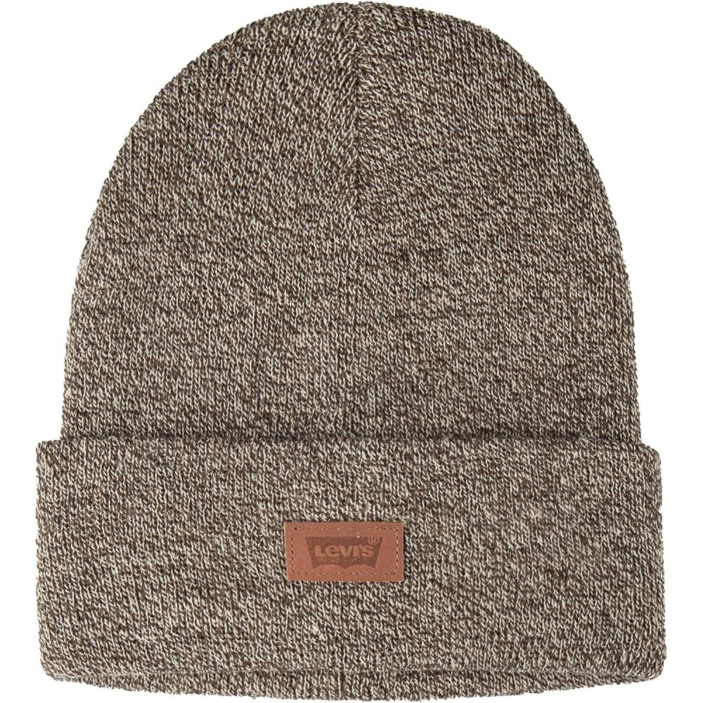 imageLevis All Season Comfy Leather Logo Patch Cuffed Hero BeanieMarl Brown