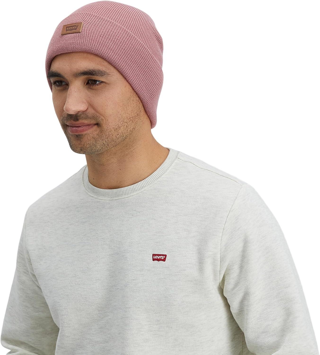 Levi’s All Season Comfy Leather Logo Patch Cuffed Hero Beanie(Pink Solid)