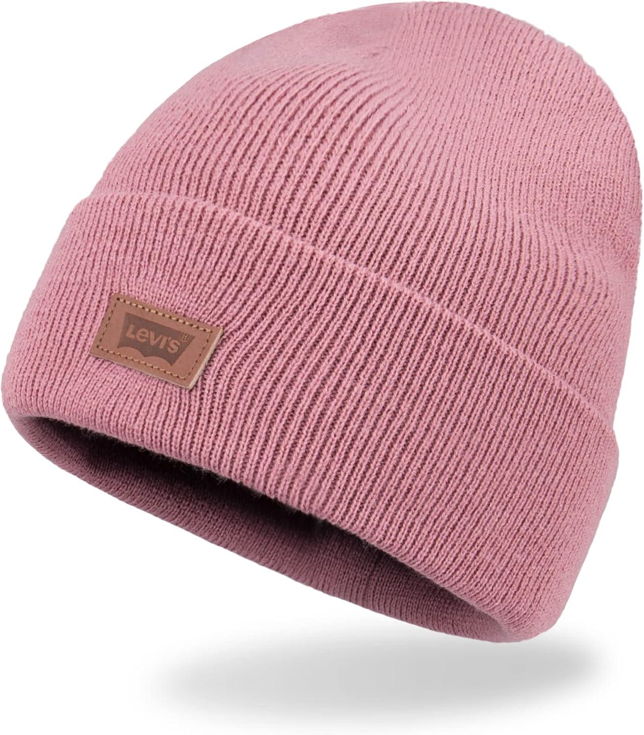 Levi’s All Season Comfy Leather Logo Patch Cuffed Hero Beanie(Pink)