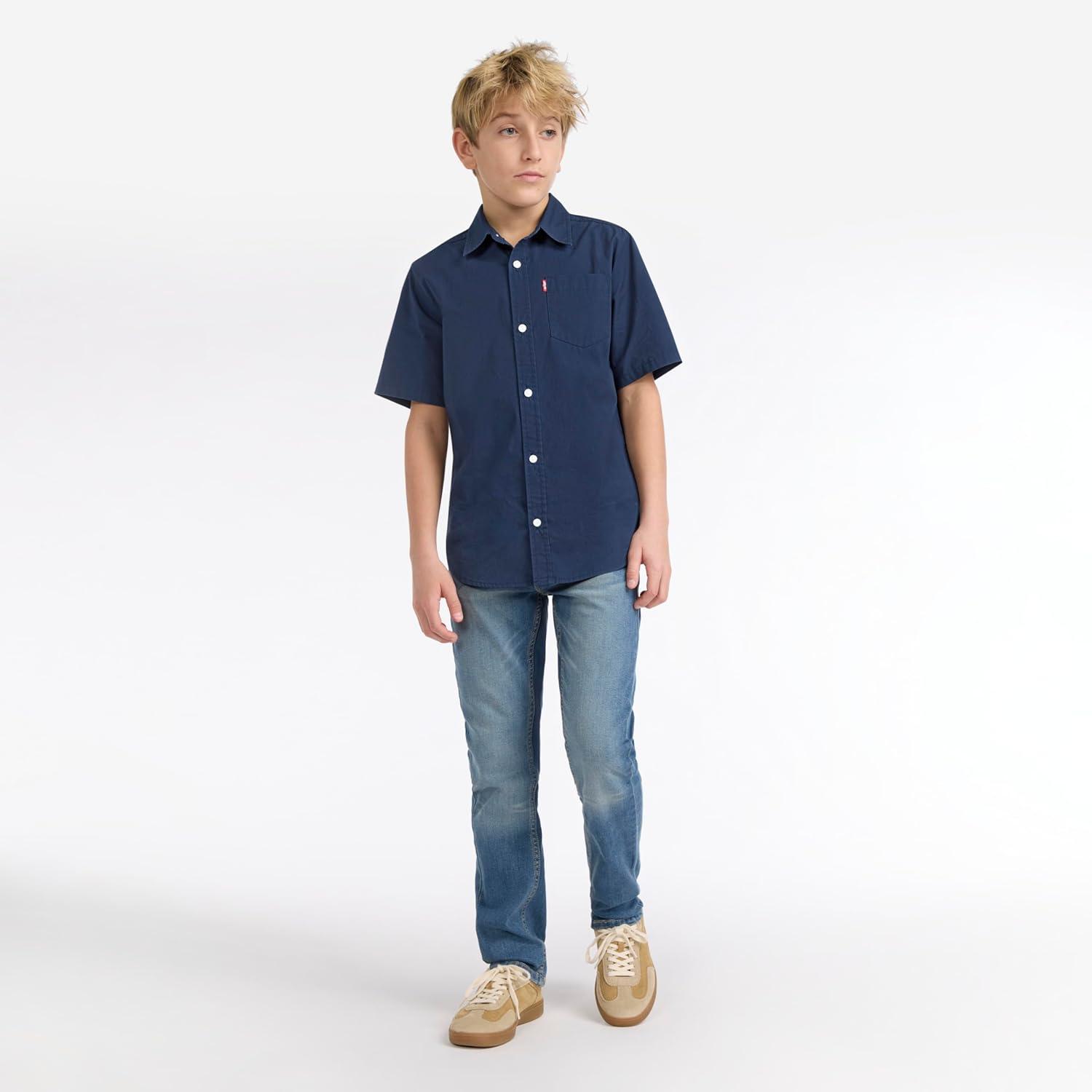 Levi’s Boys Short Sleeve Woven Button Up Shirt(Dress Blues)