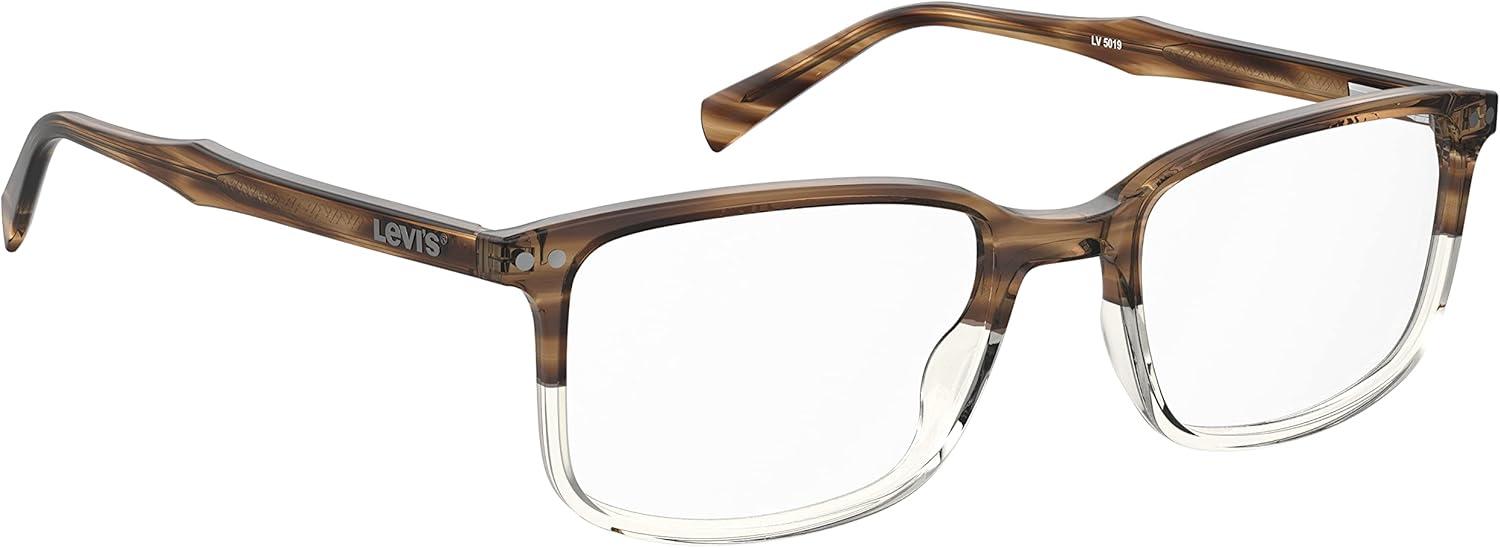 Levi’s Men’s LV 5019 Rectangular Prescription Eyewear Frames, Brown Horn/Demo Lens, 54 mm, 19mm