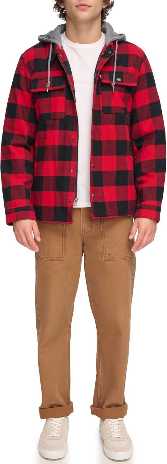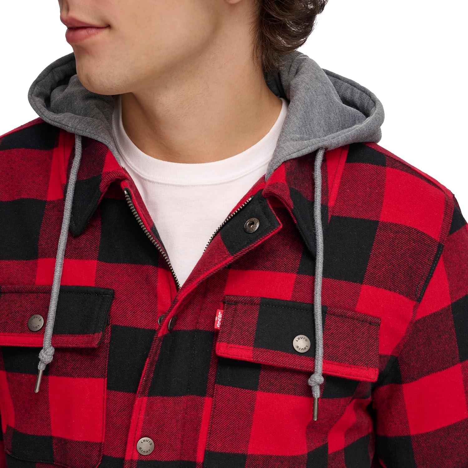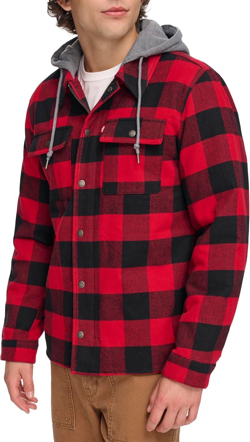 Levi's mens Plaid Sherpa Lined Hooded Shirt Jacket (Regular & Big & Tall Sizes)(Red/Black Plaid)