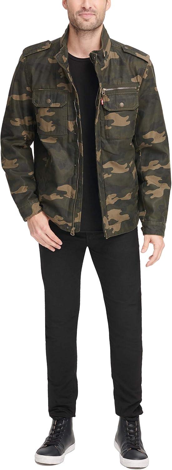 Levi’s mens Washed Cotton Military Jacket (Regular & Big & Tall Sizes)(Camo Filled)