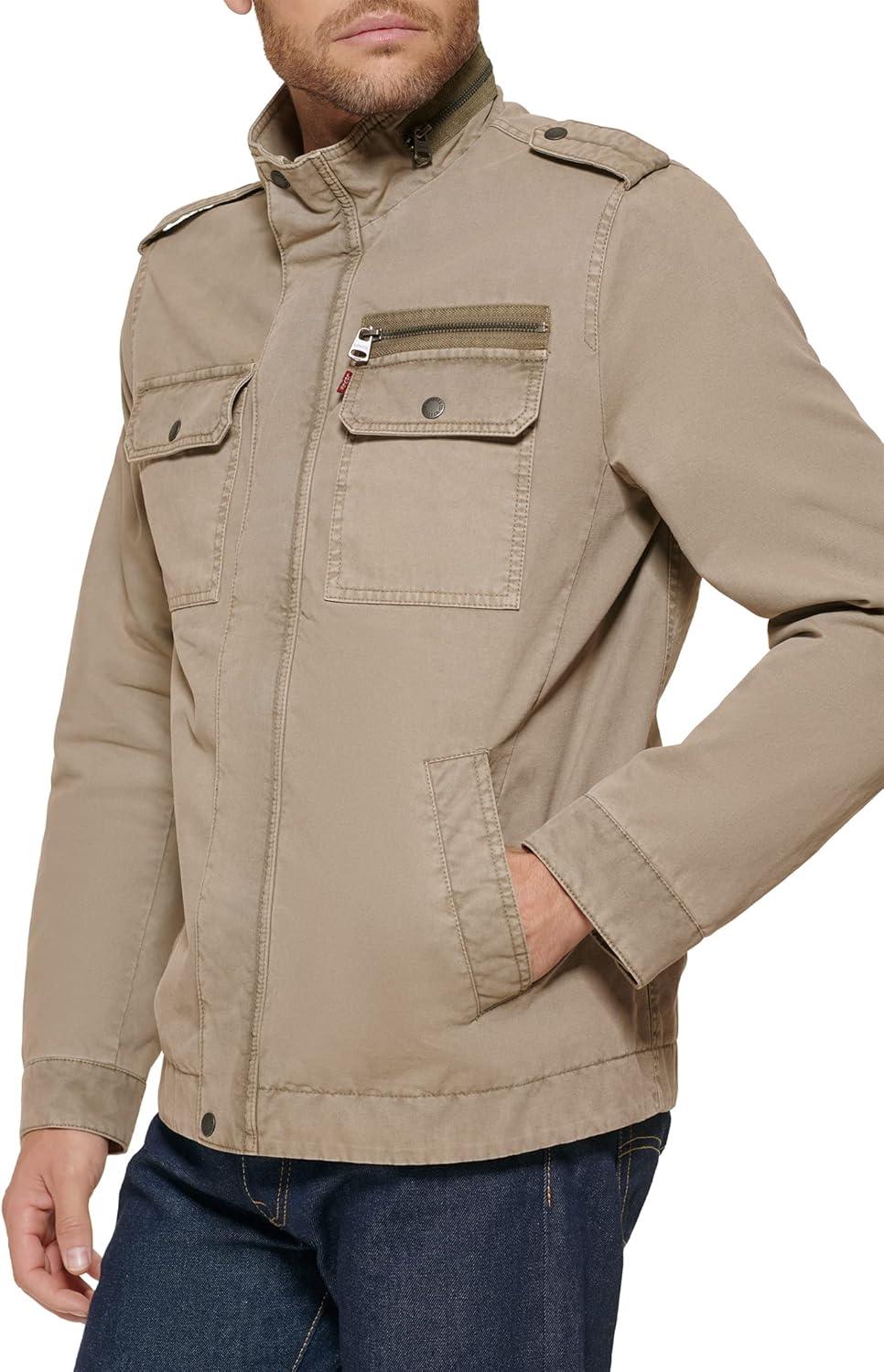 Levi’s mens Washed Cotton Military Jacket (Regular & Big & Tall Sizes)(Stone Unfilled)
