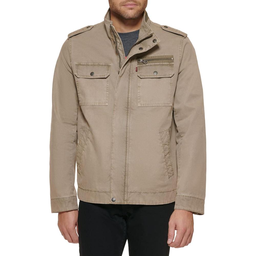 Levi's mens Washed Cotton Military Jacket (Regular & Big & Tall Sizes)(Stone Unfilled)