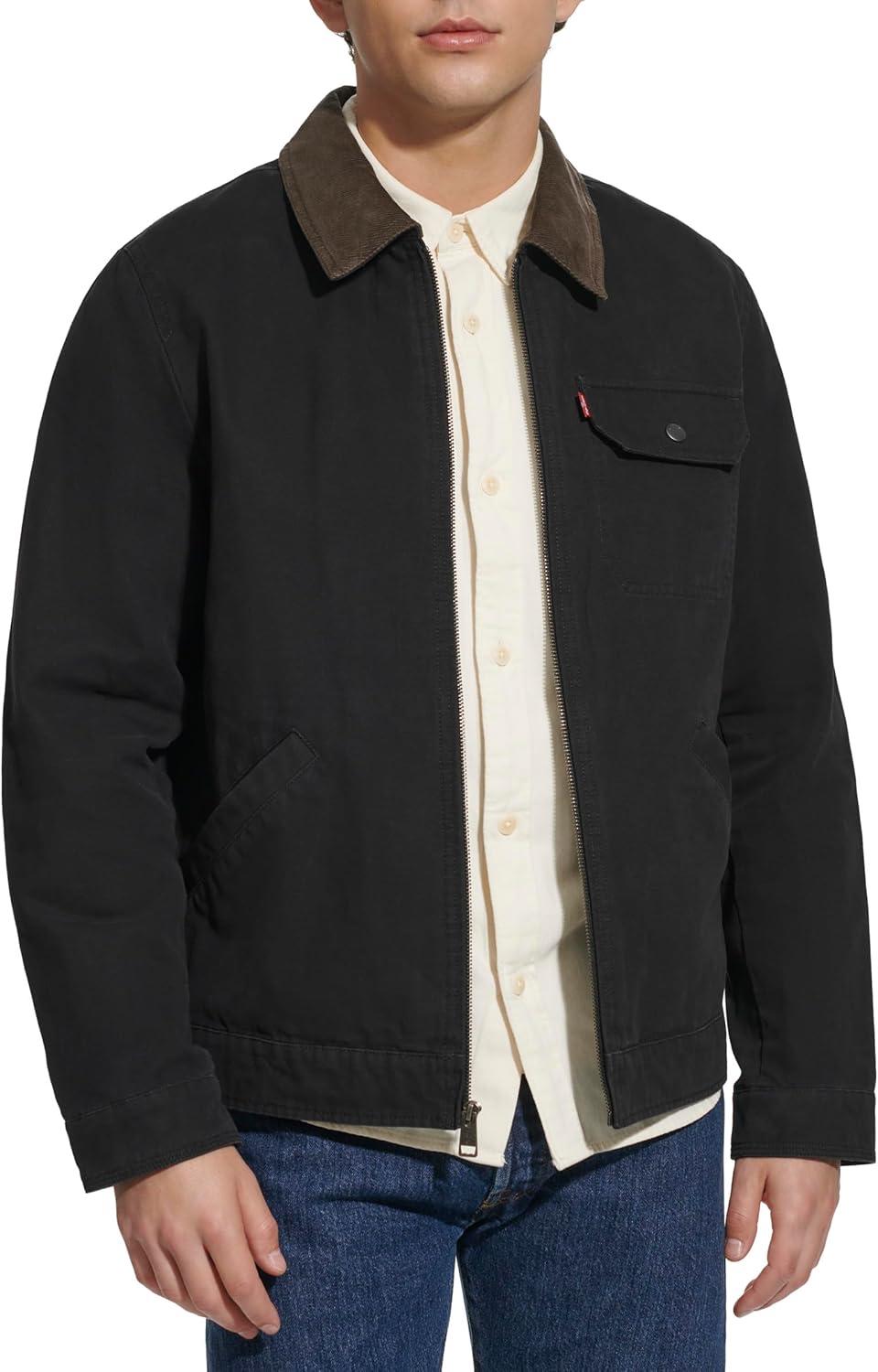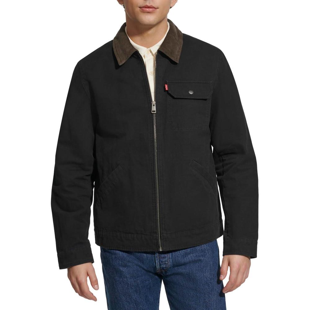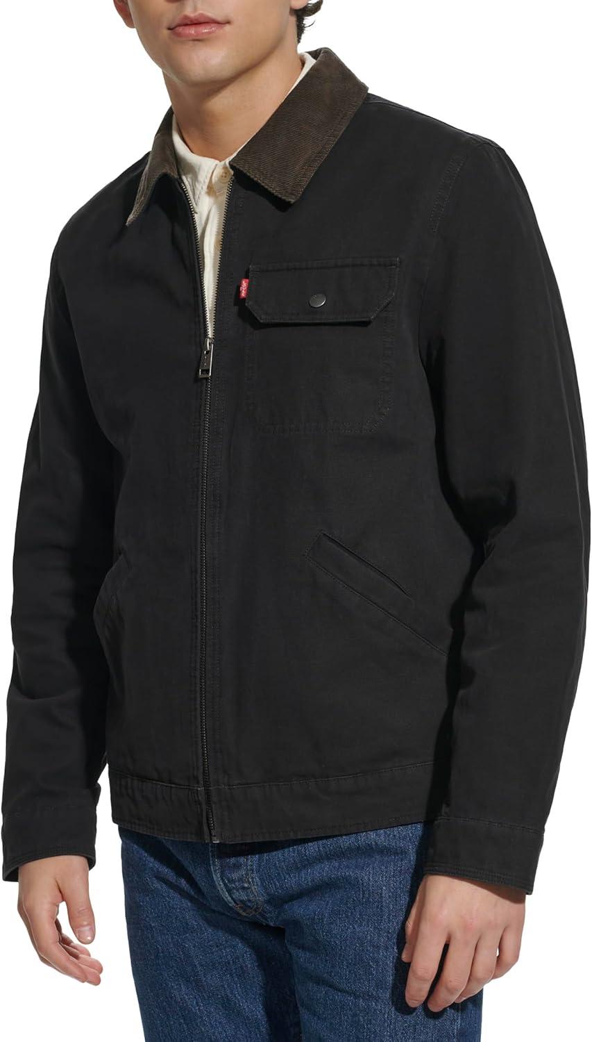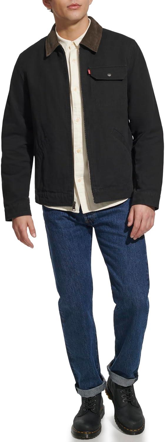 Levi’s Men’s Workwear Cotton Canvas Corduroy Collar Depot Jacket(Black Lightweight)