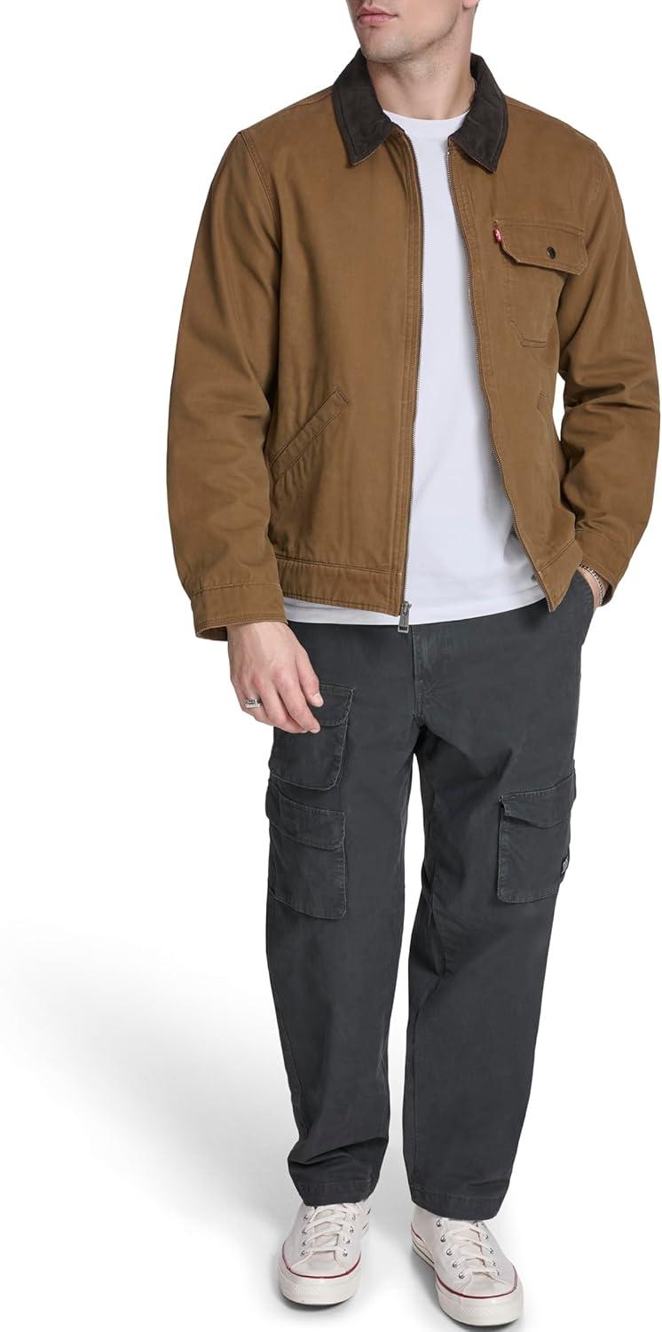 Levi’s Men’s Workwear Cotton Canvas Corduroy Collar Depot Jacket(Black Quilt Lined)
