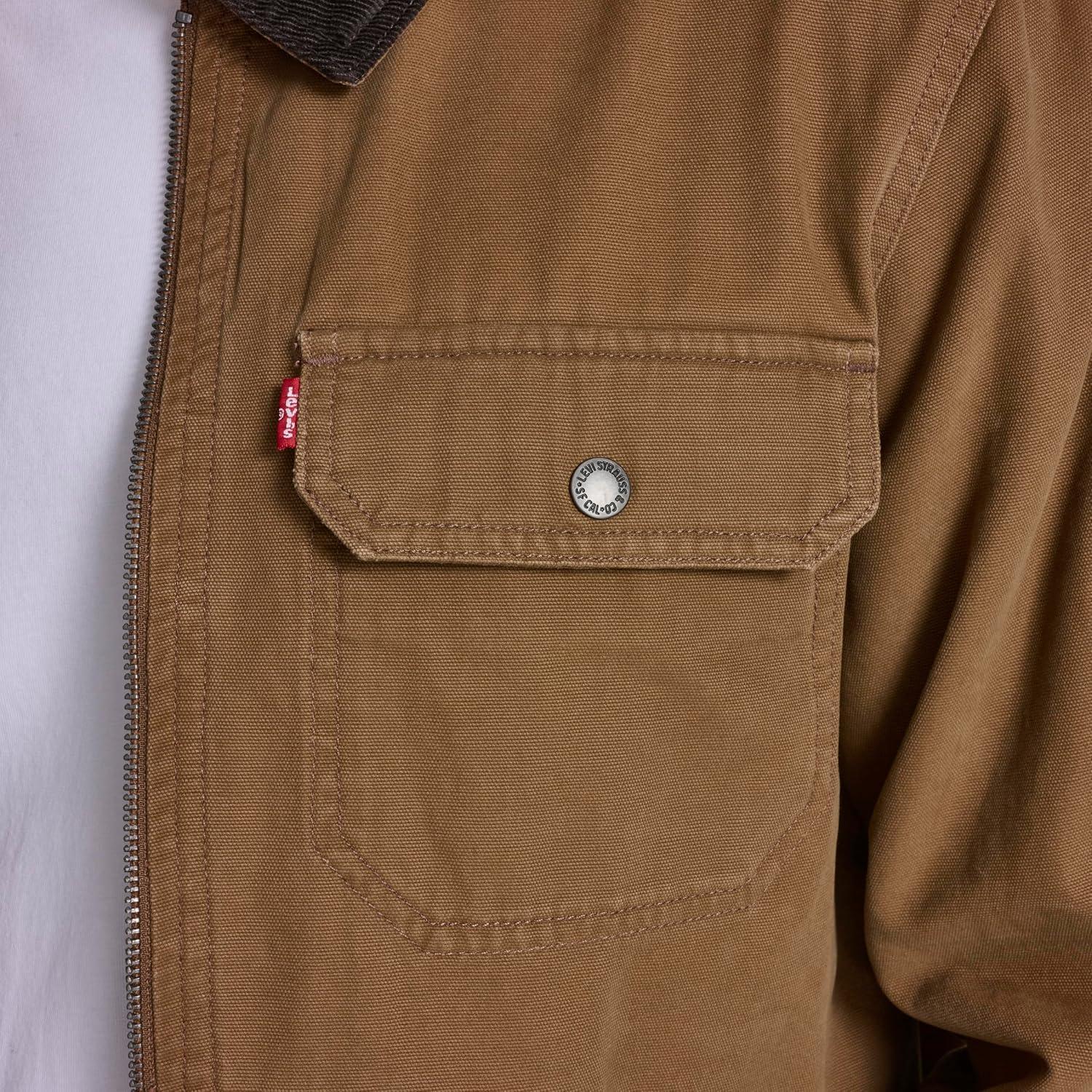 Levi’s Men’s Workwear Cotton Canvas Corduroy Collar Depot Jacket(Brown Quilt Lined)