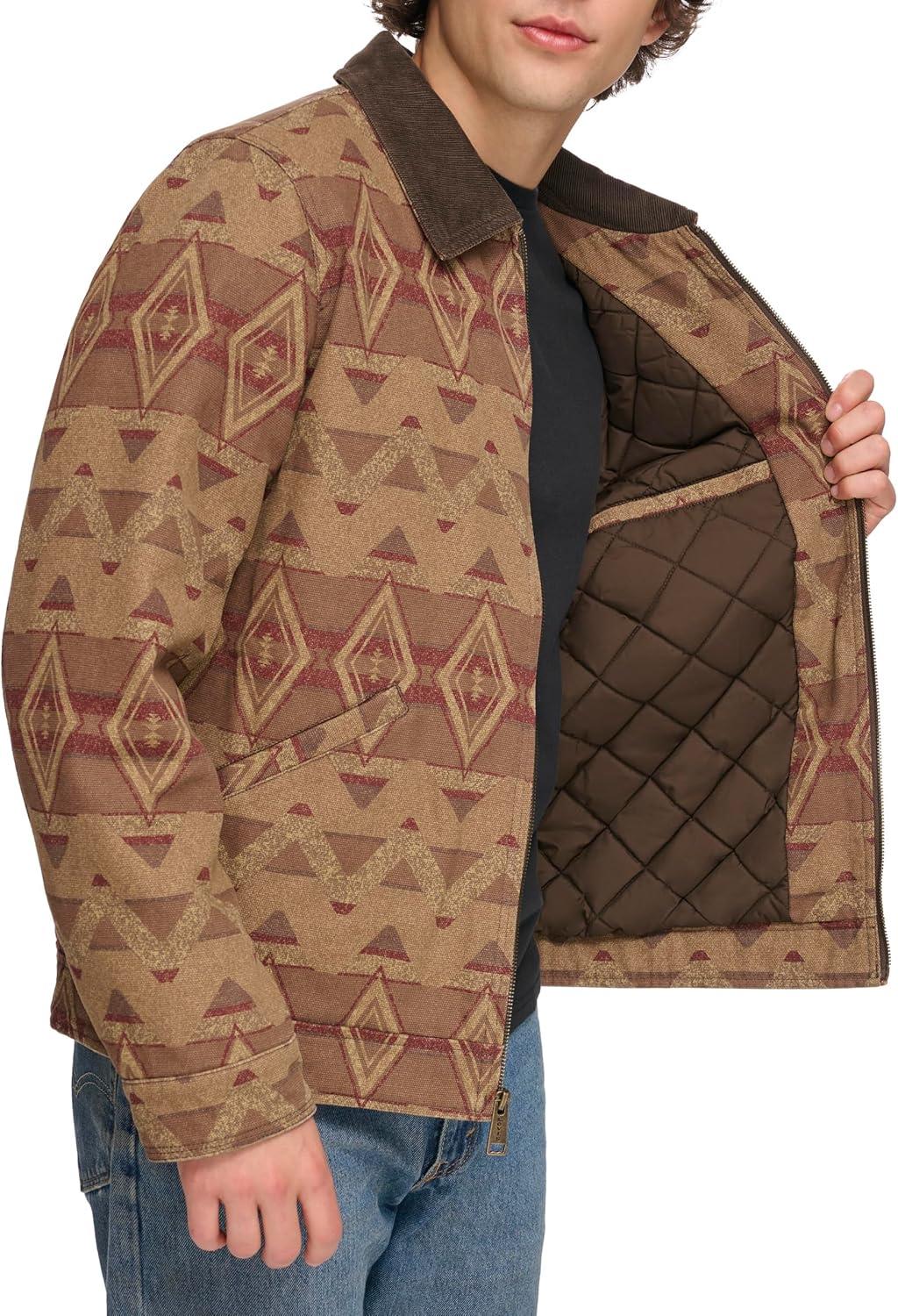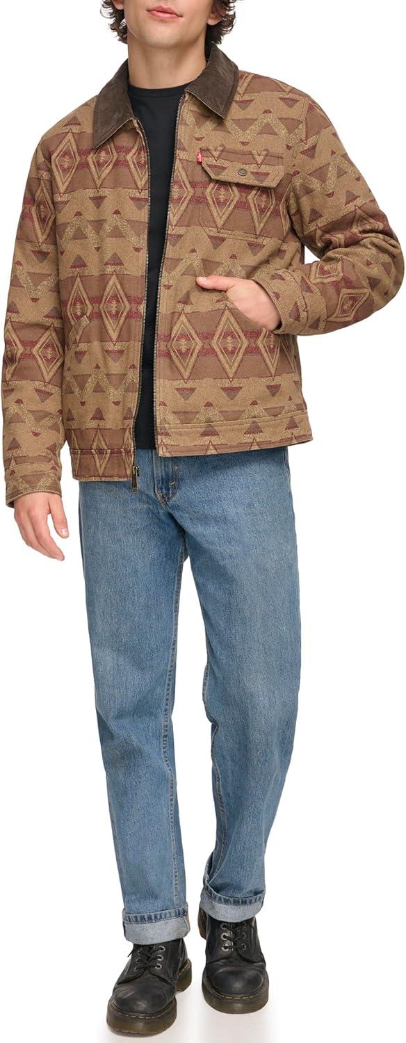 Levi's Men's Workwear Cotton Canvas Corduroy Collar Depot Jacket(Geometric Print)