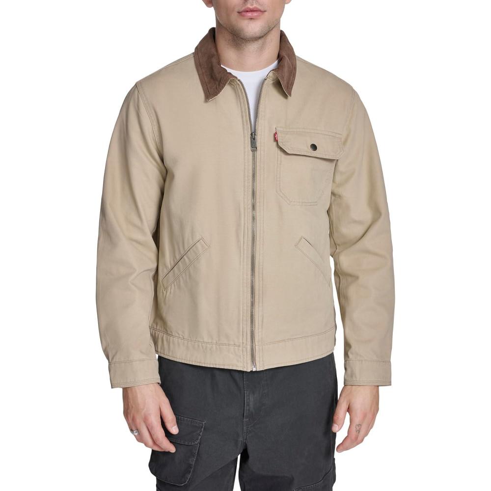 Levi’s Men’s Workwear Cotton Canvas Corduroy Collar Depot Jacket(Tan Lightweight)