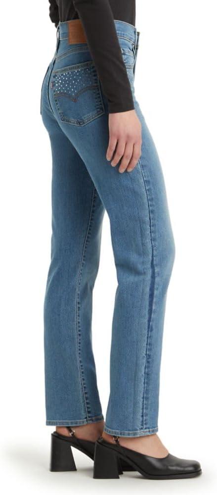 Levi’s Womens 724 High Rise Straight Jeans(Camp Denim Rhinestone)