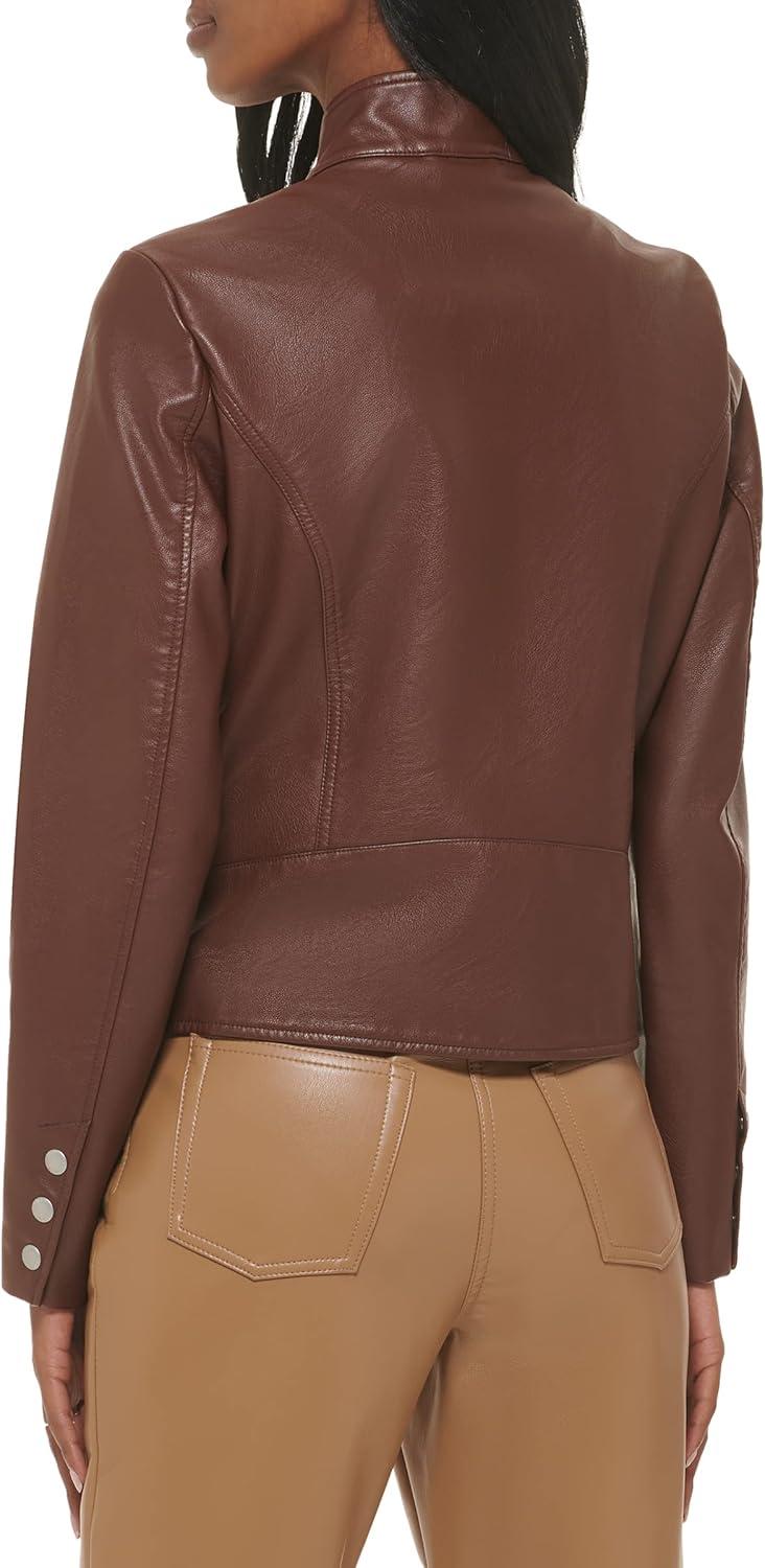Levi’s Women’s Faux Leather Motocross Racer Jacket (Standard and Plus)(Chocolate Brown)