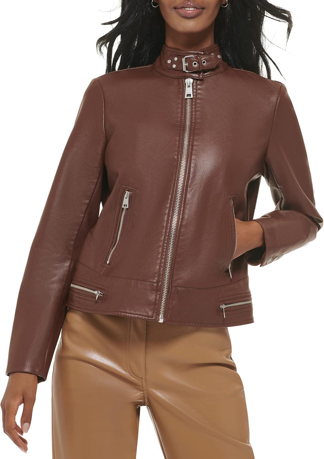 Levi's Women's Faux Leather Motocross Racer Jacket (Standard and Plus)(Chocolate Brown)