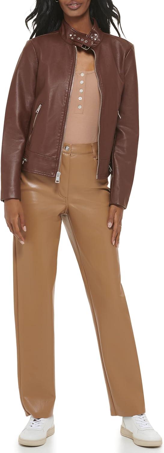Levi’s Women’s Faux Leather Motocross Racer Jacket (Standard and Plus)(Mocha Latch Collar)