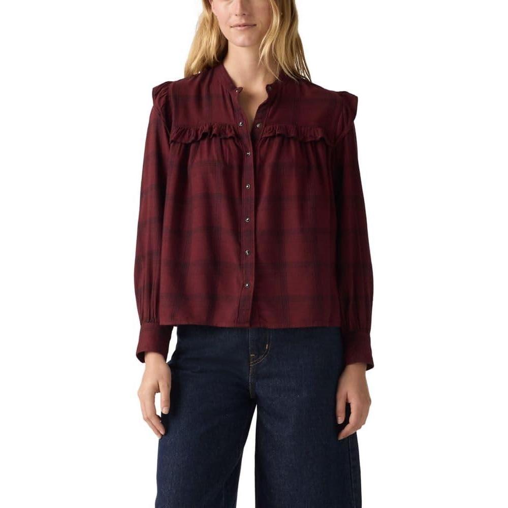 Levi’s Womens Gianna Long Sleeve Blouse((New) Small Nea Plaid Tawny Port (Flannel))