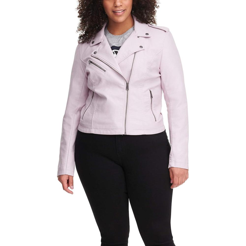 Levi’s Women’s The Classic Faux Leather Moto Jacket (Regular & Plus Size)(Scallop Shell Pink)