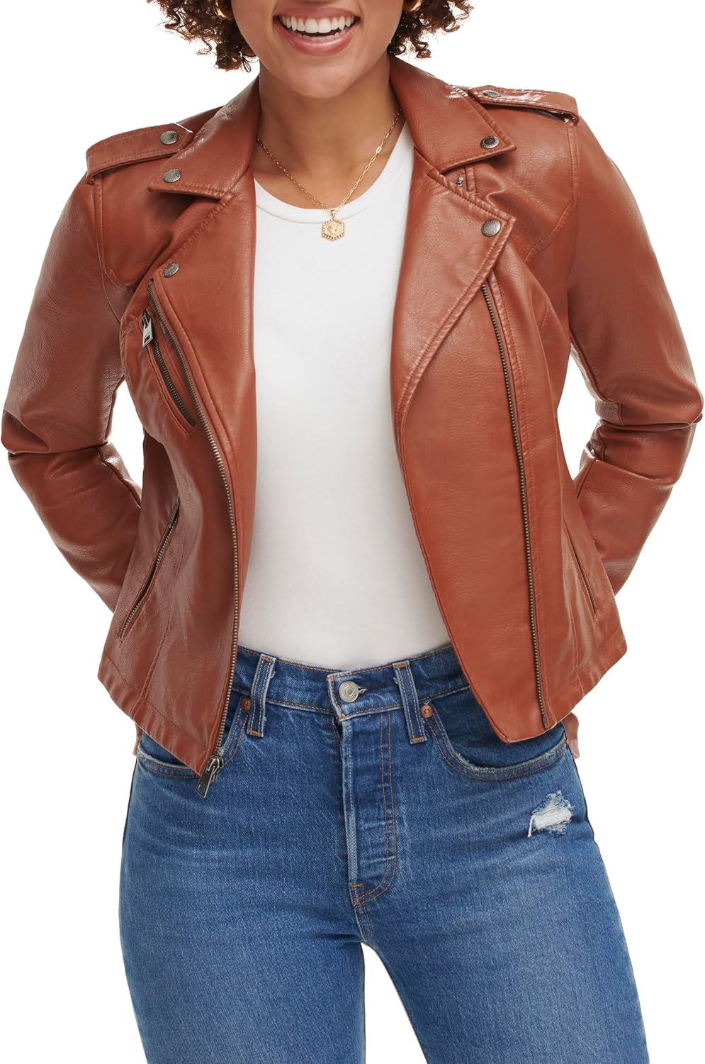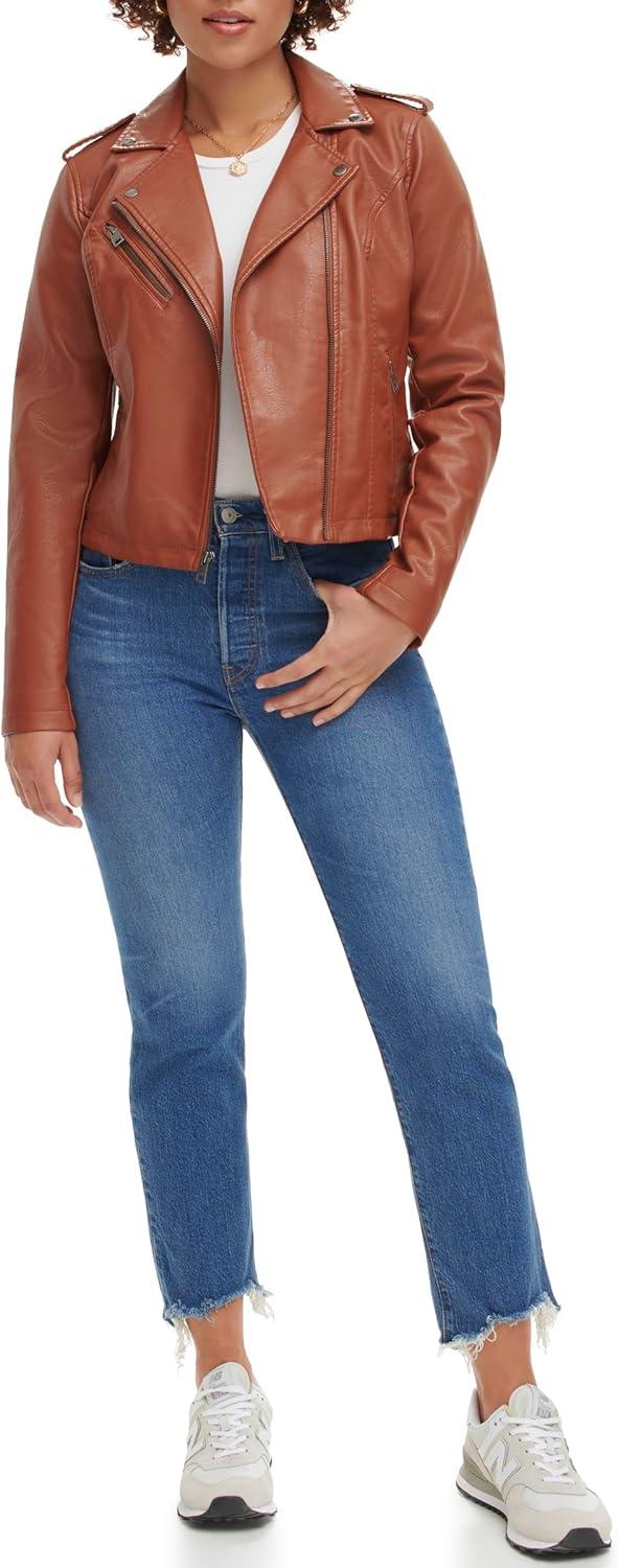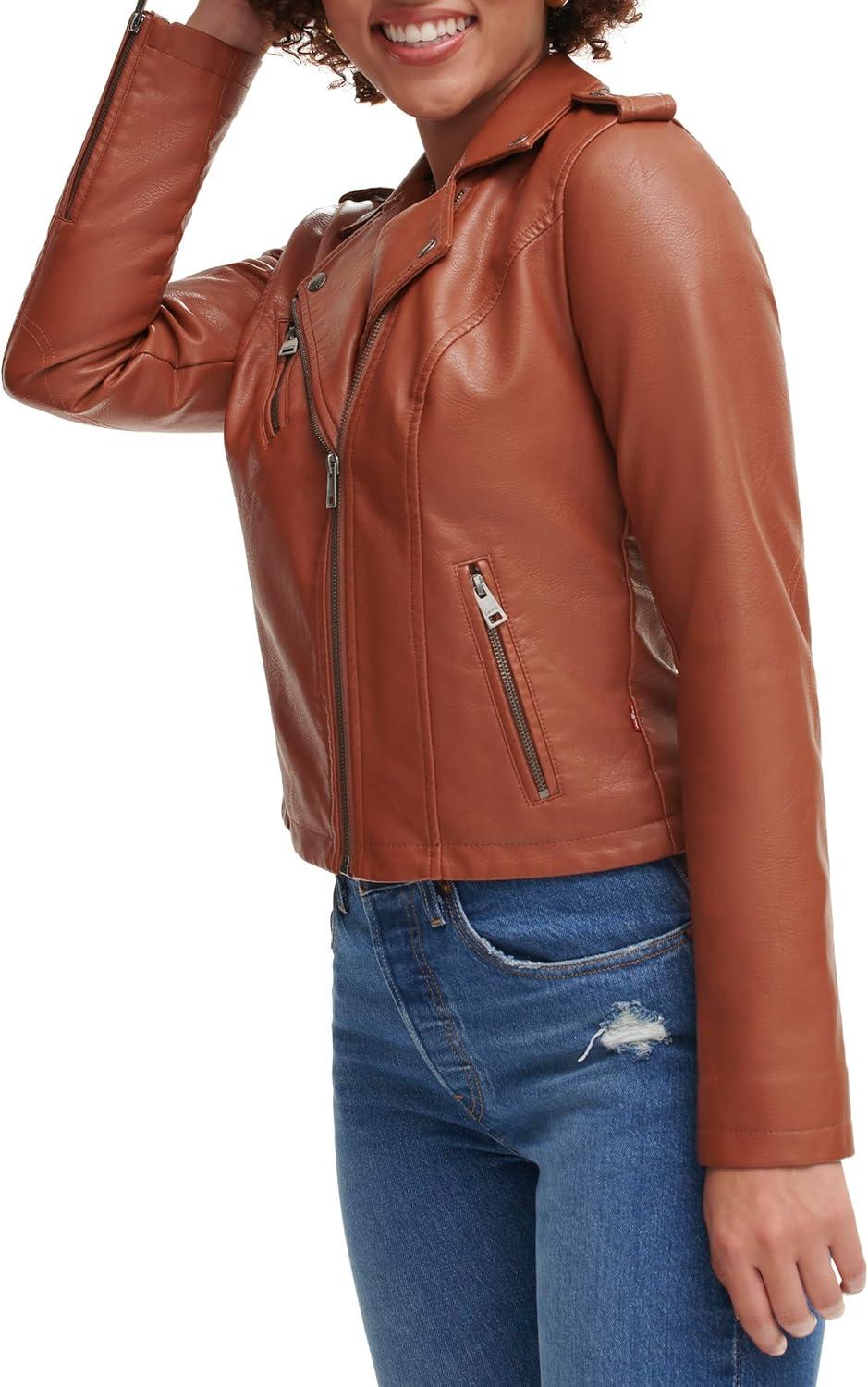 Levi’s Women’s The Classic Faux Leather Moto Jacket (Regular & Plus Size)(Camel Brown)