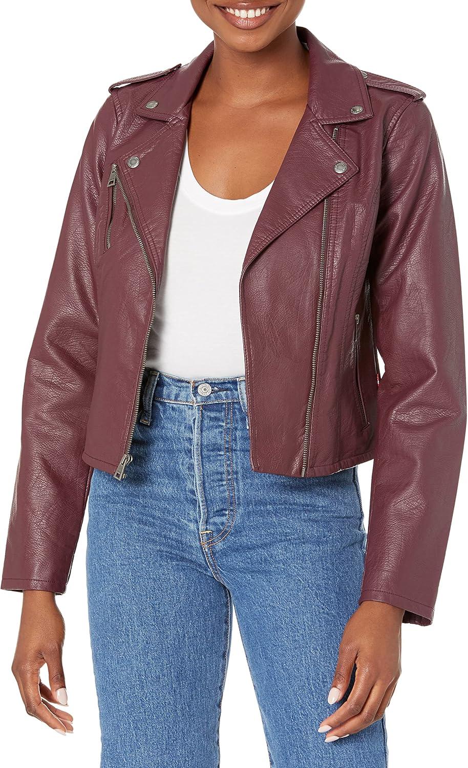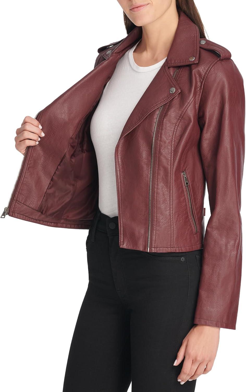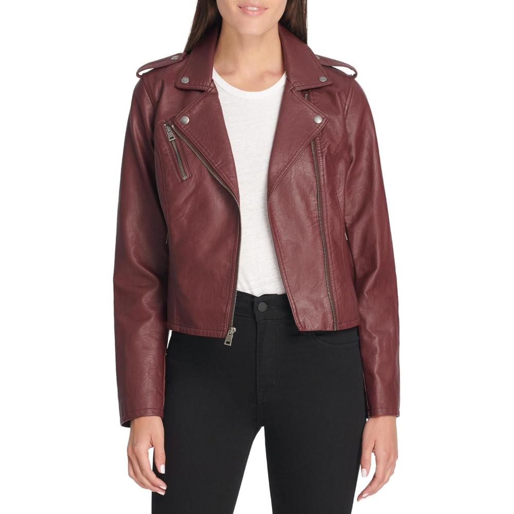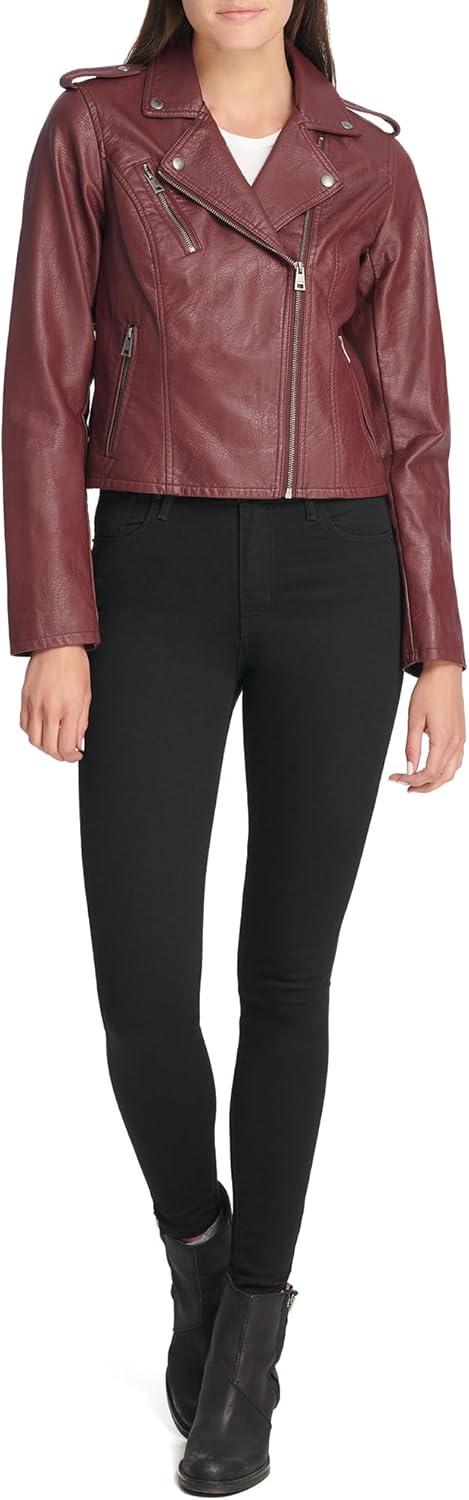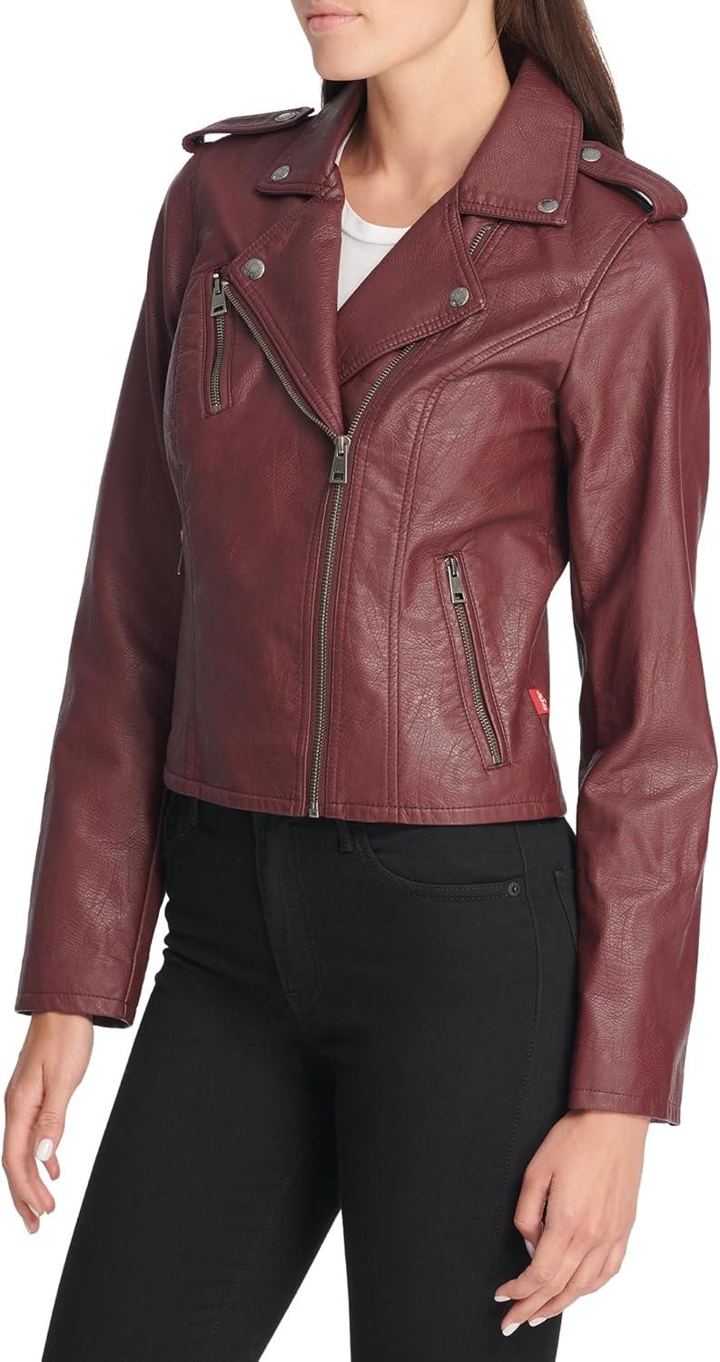Levi’s Women’s The Classic Faux Leather Moto Jacket (Regular & Plus Size)(Burgundy Red)