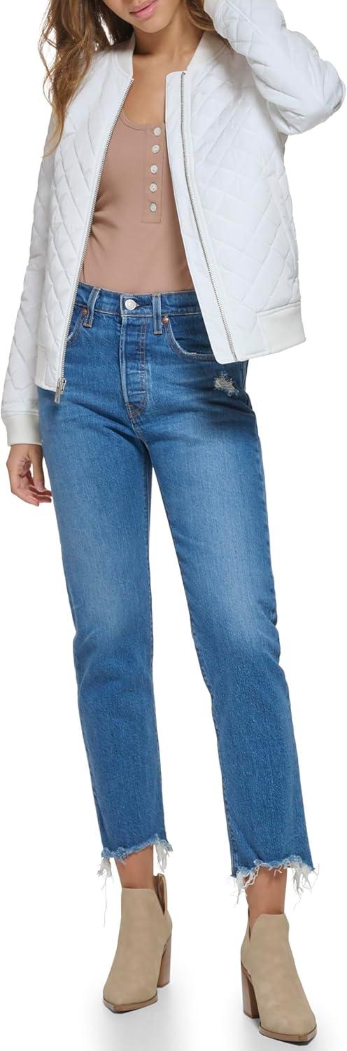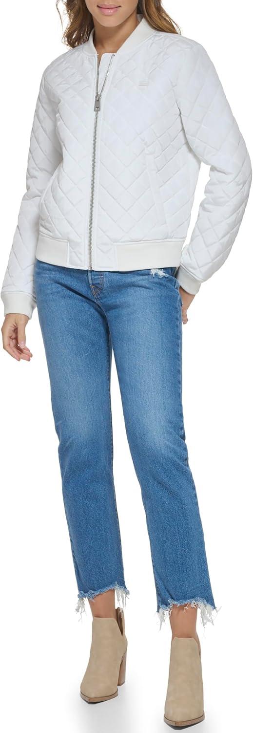 Levi's womens Women's Diamond Quilted Bomber Jacket With Front Pockets - Regular & Plus Sizes(White)