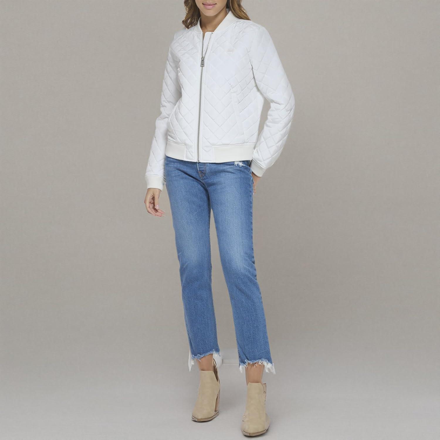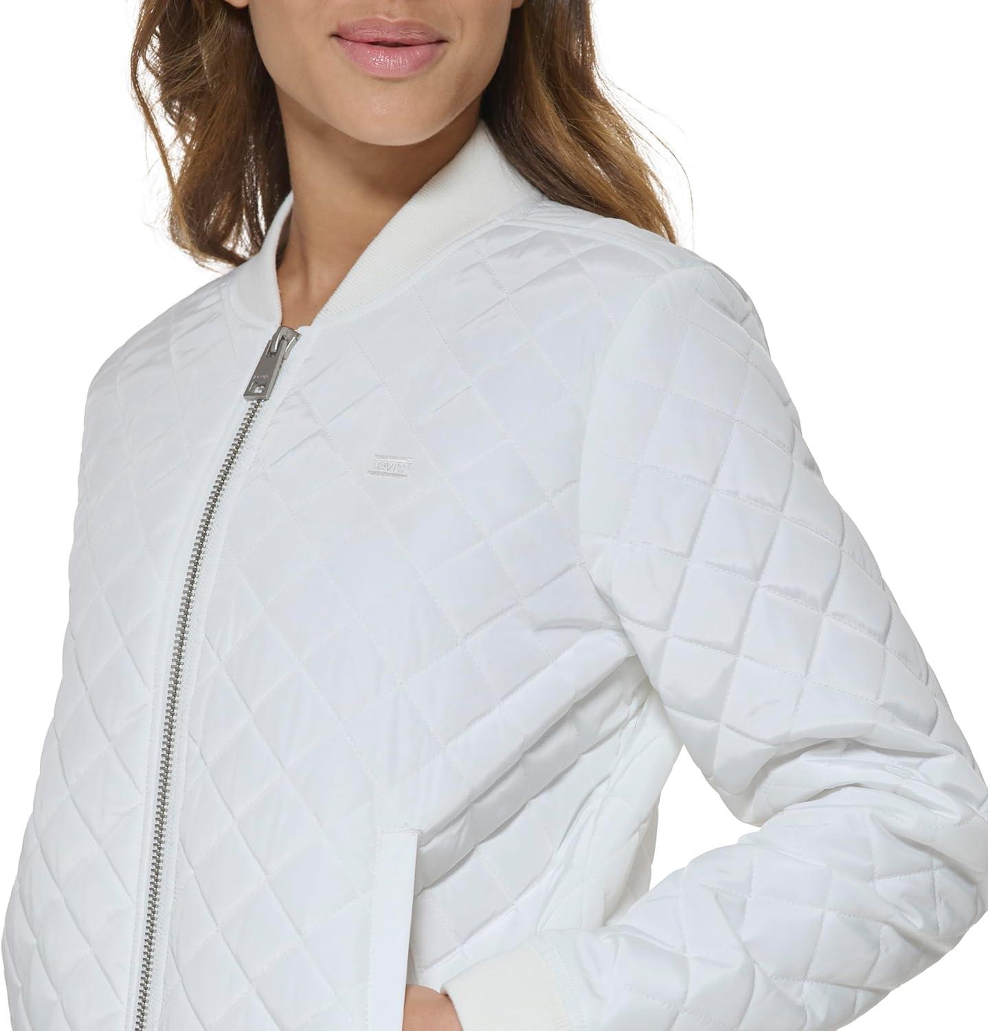Levi’s womens Women’s Diamond Quilted Bomber Jacket With Front Pockets – Regular & Plus Sizes(White)